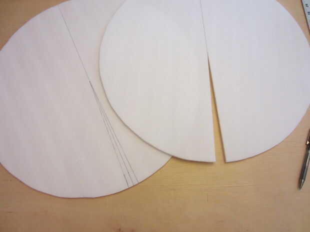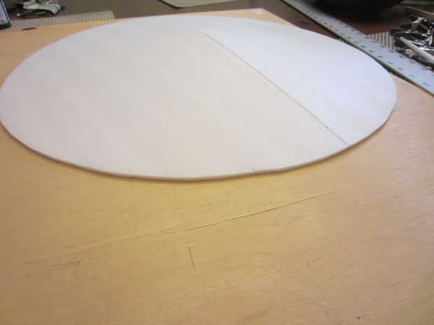 a) marcar un círculo de diámetro de 20" en el tablero de la espuma y recortar con un cuchillo del Exacto