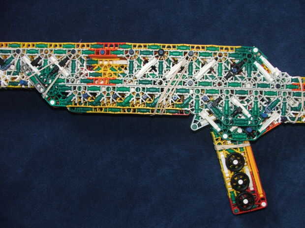 Una pistola de cinco tiros pseudo semi automática k'nex. La idea era de k'nex conceptos 12f7 de Oblivitus.