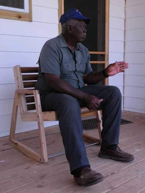 Una característica fundamental de nuestra casa este año fue el porche frontal, una característica importante en sur casas en general--y quería redondear con una mecedora para nuestro cliente, entrenador de MacArthur. Para que sea parte integrante de la casa, los materiales fueron rescatados desde el proceso de construcción y las dimensiones fueron modificados para requisitos particulares para Mac. La casa es una toma moderna en el vernáculo meridional tradicional, esta silla es una interpretación contemporánea de la pieza Sur clásica de los muebles, la silla mecedora.