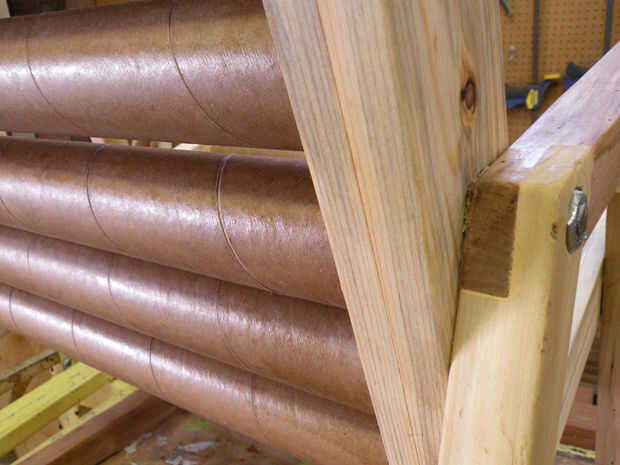 Pasar con cualquier retoque lijado a mano para quitar manchas de pegamento y así sucesivamente y utilizar madera relleno si y cuando sea necesario. Mano frote el poliuretano con trapos, porque los cepillos son difíciles de conseguir entre los tubos y así sucesivamente. El cartón realmente empapa para arriba termina bien, pero tiende a áspero seco porque la humedad en los acabados levanta las fibras poco en la cartulina. Suave hacia fuera con grano 220 cuando se haya secado la primera capa, luego ejecute otra capa de acabado. Asegúrese de que obtener un par de Buenos abrigos en los corredores.