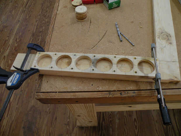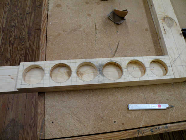 Para los tubos del asiento, la capa interna de la "L" s son aserrado agujero hacia fuera. Los tubos que utilizan tienen un diámetro exterior de 2-1/4" pulgadas, así que hice los agujeros que tamaño para un ajuste apretado.