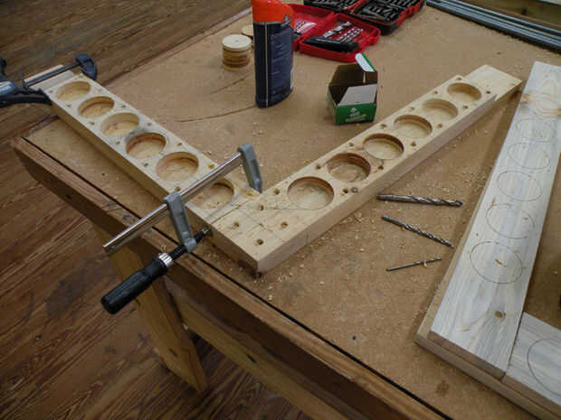 Una vez que las capas más internas han sido taladradas, los laminados para las capas exteriores con mucho pegamento, traslapar la articulación. También usé tornillos, pero otra vez, no son estrictamente necesarios.