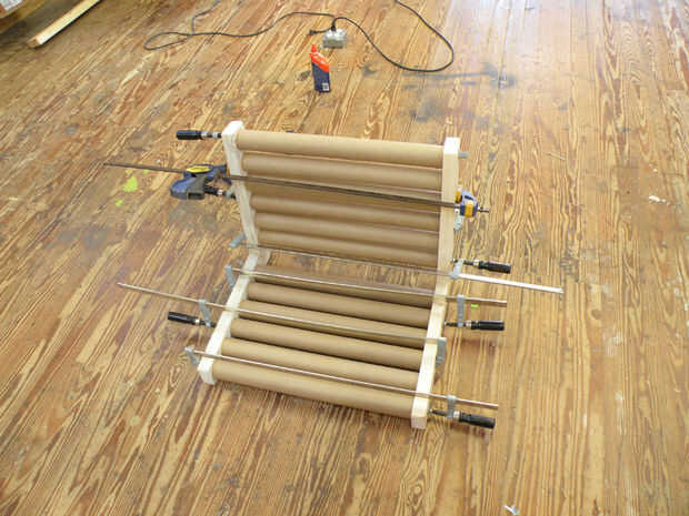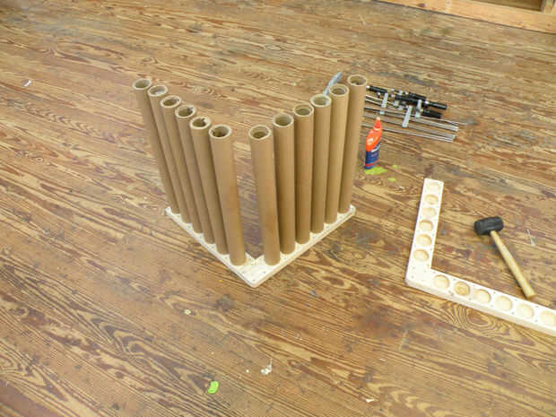 Asiento de los tubos en una "L" con algun pegamento, luego en el otro lado (puede ser difícil a todo) y luego fije con abrazaderas el infierno fuera de él.