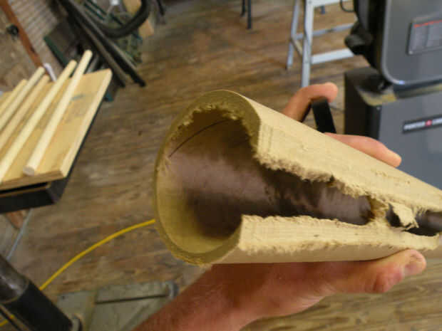 Cortar los tubos a la longitud--mi silla es 22" ancho, que es mucho. Fácilmente podría ser 18", o incluso un poco menos. Asegúrese de que acomodar por la cantidad de tubo enterrado en la madera a cada lado - 3/4" a cada lado, para un total de 1-1/2"--para que los tubos deben ser 1-1/2" más de lo que quieras el ancho final del asiento a ser.