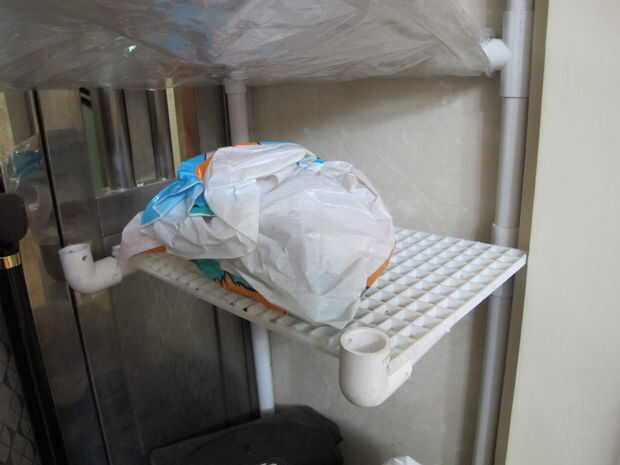 Hacer el rectángulo todo estructura introduzca en esta pequeña área, por lo que este estante de PVC no está fijado por un tornillo.