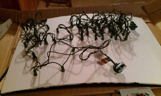 Después su diseño, ahora es el momento para perforar. Conseguir el taladro y la broca y taladro donde desee insertar la luz LED de Navidad. He utilizado un 50 sistema de luces asi taladré 50 agujeros. Luego inserte las luces de Navidad en el aburrido y luego caliente pegamento. Para asegurarse de que las luces permanecen en el lugar. Una vez que se hace debería verse como esto.