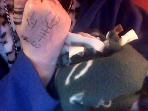 En primer lugar, necesita estar en la pandilla de esqueleto. En serio. Primero dibuja la parte superior de la cosa de tipo de esqueleto clave. Dibuje una línea hacia abajo y tres líneas horizontales. Escribir, "Pandilla" en la parte inferior y luego dibujar I-/. Ahora se hace la parte de atrás!