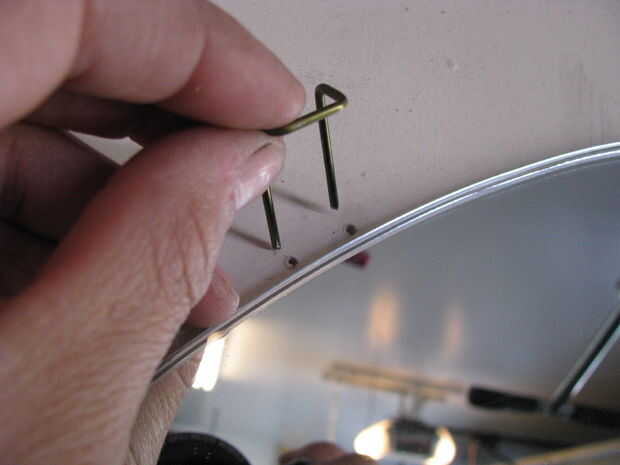 Estos clips simples facilitan cuelgue espejos grandes. Doble una sección de soporte en forma de "U".  Doblar la parte inferior de 90 grados. Toque la suspensión recién formada en la pared y colgar el espejo.