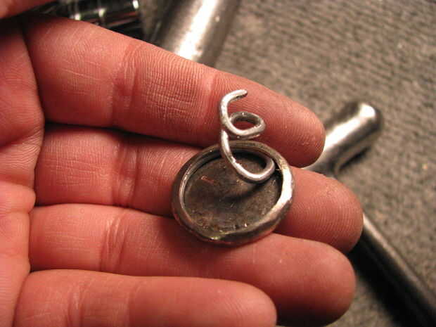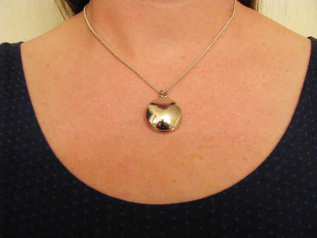 Un colgador de ropa, es posible crear este relicario hecho a mano. Después de rodar un círculo se utiliza para formar el marco de las mitades del medallón. Ver paso #4 en el enlace de más abajo.