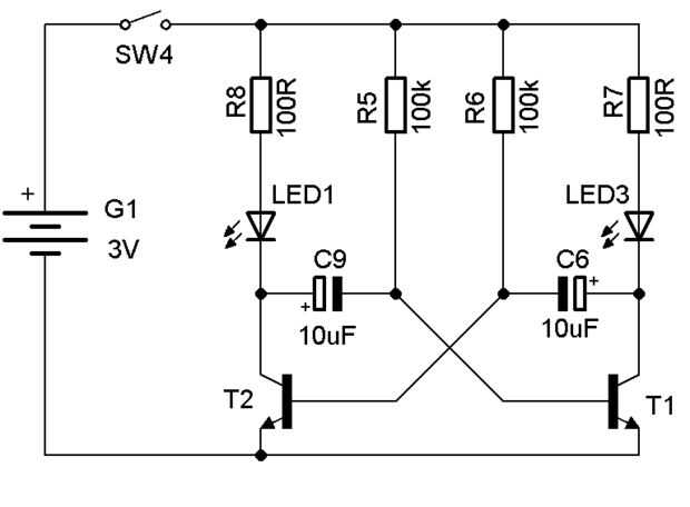 Un multivibrador astable. Puede cambiar los valores de R5, R6 y ver resultados...