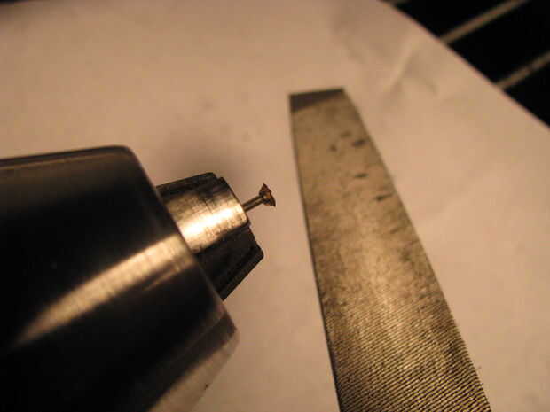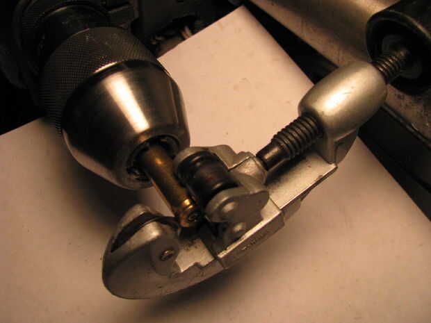 Monte una cáscara vacía en que una prensa del taladro. Asegúrese de que está en su menor RPM. Usar un cortatubos para cortar el extremo de la cartilla. Archivo de la parte posterior plana.