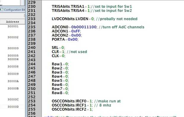 El firmware incluido aquí, escrito en C18, salidas PWM de 8 bits a todos los 24 canales con los datos enviado desde una aplicación de procesamiento . Comunicación USB está configurado para ir a la interrupción de la alta y la simple secuencia PWM se realiza en el software en la función main(). Pero fácilmente podría ser trasladado a una rutina de interrupción.