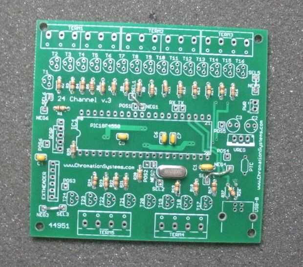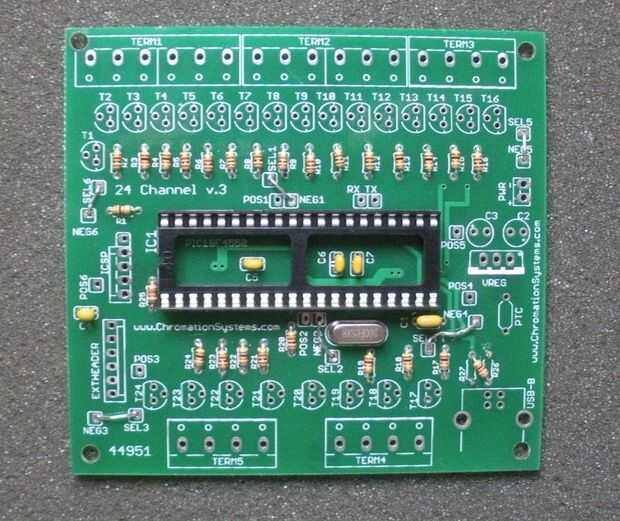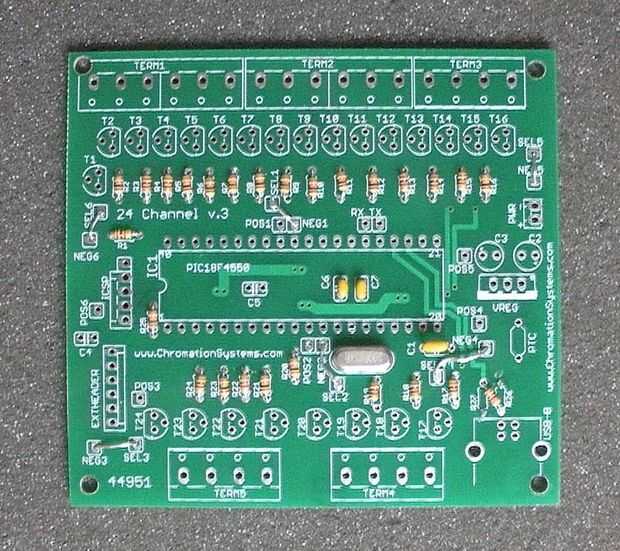 Actualización: Este controlador ha sido sustituida por la muy superior 48 canales Mono / 16 canal RGB LED controlador, con conexión USB y compatibilidad ColorMotion . Visite http://www.chromationsystems.com/48channled.html para obtener más informació