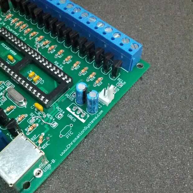 Actualización: Este controlador ha sido sustituida por la muy superior 48 canales Mono / 16 canal RGB LED controlador, con conexión USB y compatibilidad ColorMotion . Visite http://www.chromationsystems.com/48channled.html para obtener más informació