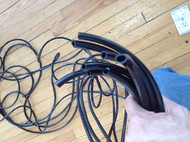 8 - 8 trozos de pie de 1/4" tubo negro alimenticia de cada uno botella de riel superior a través de botellas y de nuevo en el depósito.