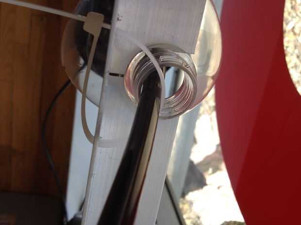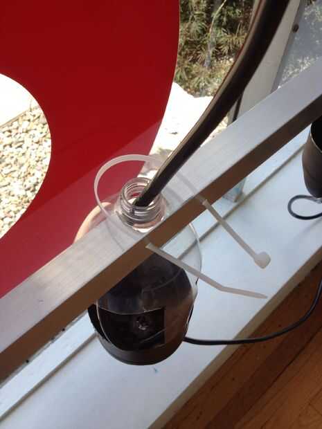 Asegure con abrazaderas de plástico sólo ajustados lo suficiente como para fijar la tubería de 1/4 de pulgada pero no demasiado apretado como para cortar el flujo. Esto permitirá que la botella al girar pero no permita que caiga. Tienes que girar las plantas a menudo debido al fototropismo (la respuesta del crecimiento de partes de la planta al estímulo de la luz, produciendo una flexión hacia la fuente de luz)