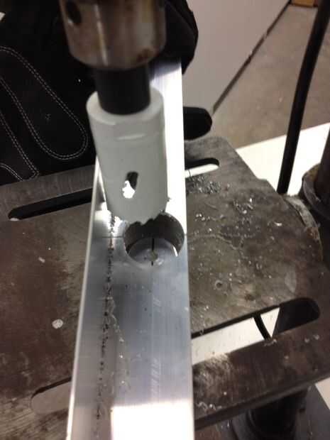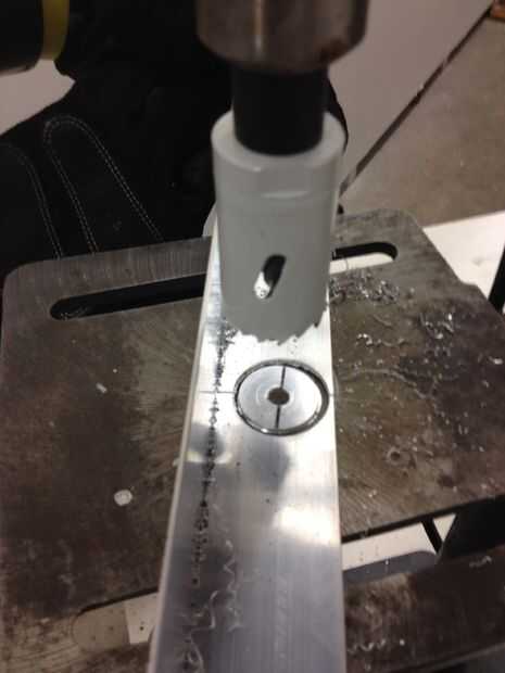 Utilizar una 1 1/8" agujero de Metal vio poco que encaja a la perfección las 2 botellas de litro.
