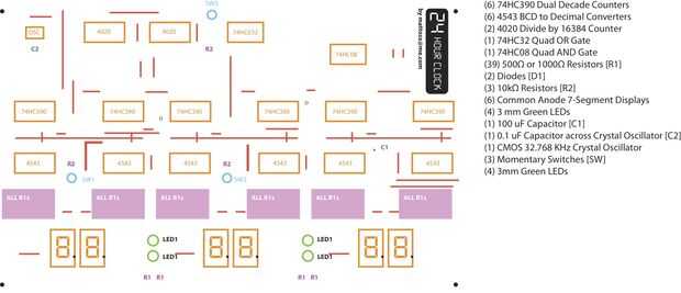 esto es una continuación de mi reloj de 24 hr de 2012. Orgánico incluye estos circuitos, pero se quedó sin tiempo (y espacio del tablero del PWB) hacerlo.Esto es lo que hace:1) se realiza un seguimiento de los días de la semana con 7 LEDs separados.