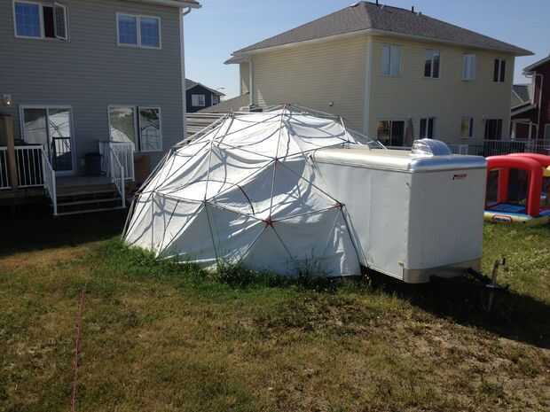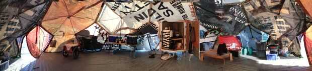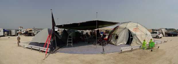 En 2011, como muchos, muchos otros amantes del desierto, he construido una cúpula geodésica para resguardarse del sol, viento y algunos del polvo se encuentran en el desierto de Black Rock. En el momento me pareció extremadamente fácil encontrar recursos sobre cómo calcular el puntal de longitudes y cómo construir un esqueleto de la cúpula del conducto eléctrico (EMT). Hay muchas maneras de hacer esto; lo que me pareció más simple y menos costoso fue aplanar los extremos de las barras de la EMT y perforar para que en cada vértice un perno sostendría todo juntos. Hay más mano de obra intensiva y costosa métodos que te dejan con una mejor o más fácil montar el producto final, pero este tipo de construcción que encontré para hacer el más sentido, y de hecho parece ser el método más popular.