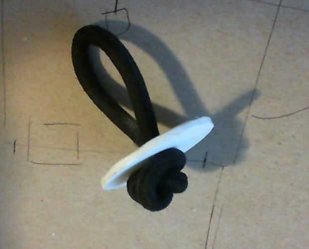 Luego, corte 12" las secciones largas de servicio pesado 5/16" nylon reforzado cuerda del amortiguador auxiliar, había colocado en la mitad y había atado un nudo así que había cerca un 3" loop y luego cortar cualquier pegamento extra y poner algo caliente en el nudo para la buena medida.
