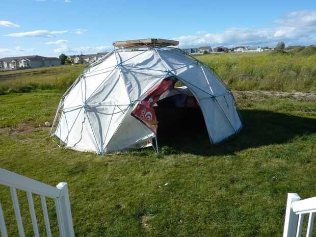 Para el pabellón, solo cosí una cremallera resistente donde la puerta está en el esqueleto y cortados con cuidado la tela de vinilo en una aleta. Esta puerta realmente no funciona muy bien, como el polvo del desierto atasca la cremallera, y el pabellón entero está bajo tensión de los pasadores de goma. En los últimos años acabo de instalar 6 ojeteador con cuerdas elásticas y mosquetones para cerrar la puerta. No es a prueba de viento o agua, pero realmente no es necesario ser.