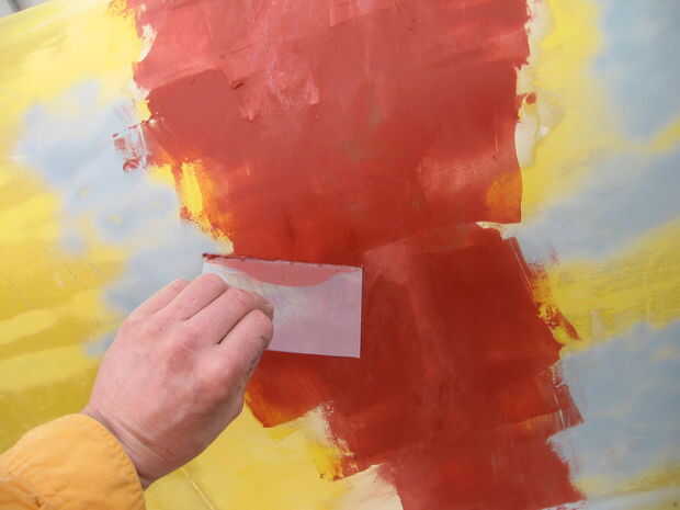 a continuación la escobilla de goma algunos cuerpo de masilla sobre las mellas e imperfecciones. Cuando que se me seco mojado-arena con un lijado bloque.