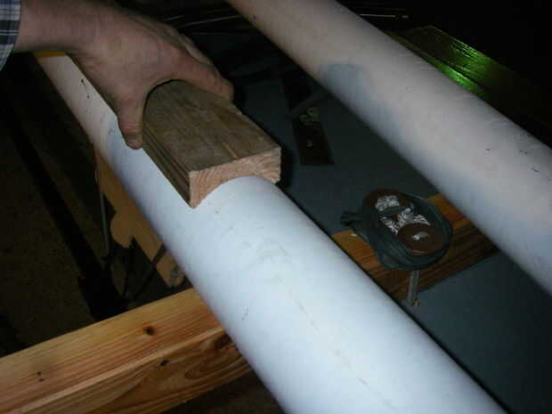 Hice algunos bloques de madera para descansar sobre ellos. Serán los "pies" de algunos patas cortas de tubería de acero inoxidable. Quienes a su vez conectarse a los travesaños. Al igual que Ezequiel, el hueso del pie conectado al hueso de la pierna, el hueso de la pierna conecta al hueso del muslo.