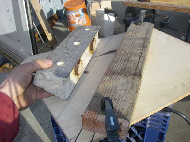 He perforado unos agujeros de amarre a los lados de los bloques y cortar las esquinas de los extremos de manera que entrarían en el agua mejor.