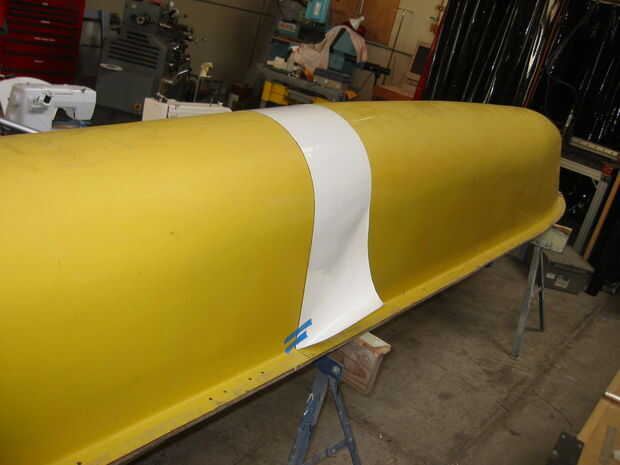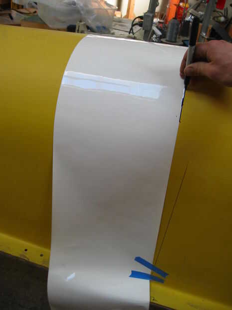 Para determinar el lugar adecuado para cortar me deslicé un pedazo de papel sobre los cascos para encontrar una curva transversal especial llamada la "geodésica". Es el camino más corto entre dos puntos en los lados opuestos del casco. Cortar los cascos, tope para arriba y comprobar para asegurarse de que la quilla y los laterales se reunieron en una curva razonablemente justa.