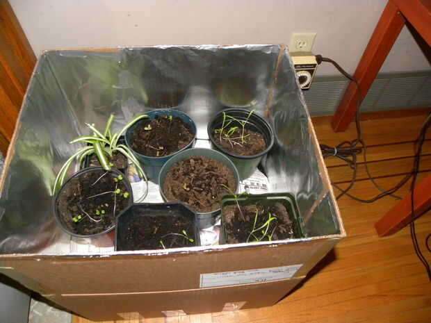 usé una caja para sostener la luz crece y aumenta la iluminación con papel de aluminio.