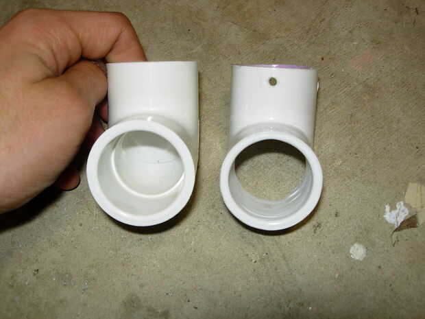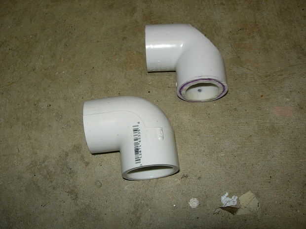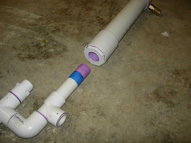 en primer lugar cortar un trozo de PVC doble la longitud de un conector de 1" y pegar en uno de los codos de PVC de 1". a continuación, inserte una un trozo largo de tubo de 1" a 1" codo y el 1" t (aunque no pegue) esto le ayudará a la junta entre el codo de 1" y 1" tee perfectamente recta. Ahora pegue el pedazo corto de tubería que se pega hacia fuera de la 1" codo a la base de la t de 1", utilizar los largos trozos de tubo para hacer la articulación tan recto como sea posible o el barril será apagado a la izquierda o derecha de la pistola. el siguiente es un paso bastante extraño escuchar de cerca, quiero que se pegue el exterior de la tapa de extremo de 3/4" en el la parte posterior de la t de 1". Hay dos cosas que quiero recordar no tapas funcionará todo el extremo hacer una prueba seco antes que pegue y esta es la parte donde la población está conectada al cuerpo así que asegúrate de insertar el casquillo de la manera correcta (para que la parte del zócalo quede mirando hacia afuera lo que es posible insertar un trozo de tubo de 3/4"). siguiente corte 7" pedazo de tubo de 1" y el pegamento en la toma restante de la elbow.now 1" cortar un trozo corto de tubo y conecte uno de los adaptadores macho restante de la Tee de 1". la última pieza que vas a necesitar una dremel debe modificar uno de los codos de 90 grados de 1" que pueden deslizarse a lo largo de 1" pedazo de tubo relativamente fácil. Lamentablemente no hay ningún truco para hacerlo su va a tomar de un poco de material a la vez hasta llegar apenas a la derecha. una vez que el codo ha sido modificado pegamento 1" a 3/4" reducción de buje en su enchufe sin modificar luego deslícelo sobre el 7" largo pedazo de pipa que ahora se pega en su lugar. luego pegar el otro lado de la tubería larga de 7" a la cámara. ahora termine el cuerpo de la pistola.