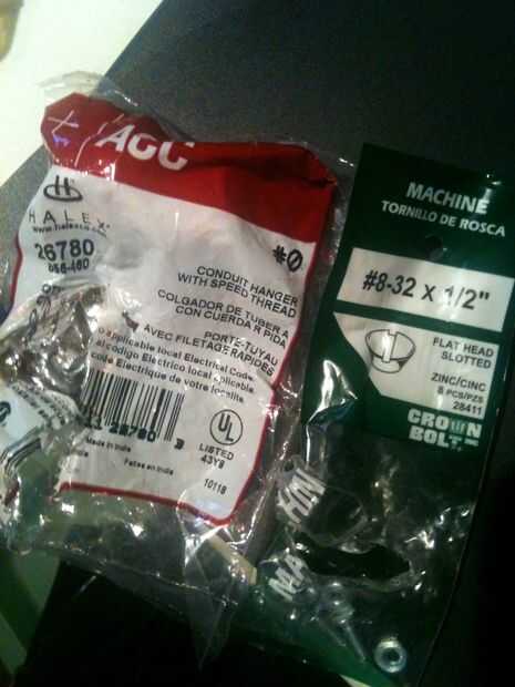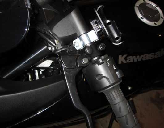 Acabo de recibir un 250 de 2011 Ninja. La primera cosa que noté durante el recorrido fue que no tengo ningún reloj! He buscado y había encontrado muchas $30-50 addon. Realmente importaba gastar tanto. Solía una percha de conducto simple y un tornillo #8 de 32 x 1/2 para montar mi funda otterbox a mi bici.