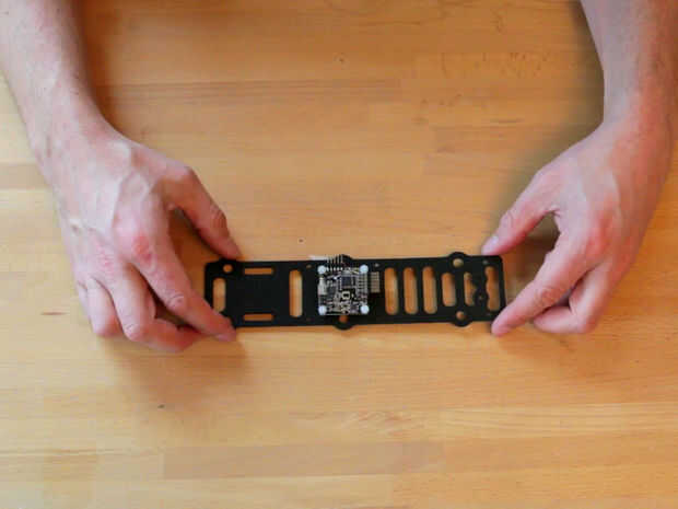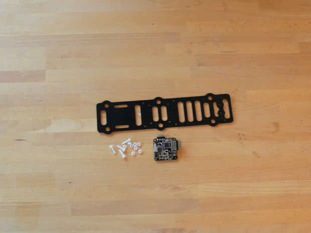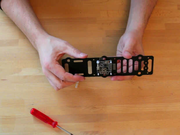 el controlador de vuelo acro naze32 está atornillado a la placa inferior del lado limpio del marco con tornillos de nylon.