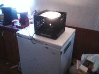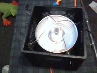 Buenos días. Este es un diseño simple para ofrecer una plataforma más estable a la luz común de la "abrazadera criadora", para personas que quieren un ambiente cálido (literalmente y en relación con el espectro de color) a ponerse en marcha en frío por la mañana cuando los días son más cortos. Para las personas que tienen ", trastorno afectivo estacional" o necesitan algunos más luz para ser feliz, esto es algo que se puede hacer con materiales comunes. (Está hecho de una luz de pinza barato criadora, cajón de leche, ataduras de cremallera de metal o trozos de alambre de metal).