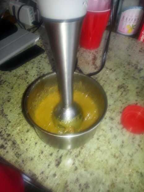 Refundido de la mantequilla y la mezcla de ajo y agregó en el segundo palo de mantequilla (había cierta pérdida en el fumador). Una vez que se derritió, mezclar los dientes de ajo en la mantequilla hasta que tomó en una textura cremosa. Utilizamos una batidora de mano, pero un bate es tan bueno. Una vez sus piezas bastante lisos, cortadas algunas del pan y la propagación una agradable capa de ajo mantequilla sobre el pan. Colóquelos a un lado.