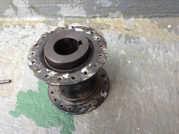 sí, sobresale un poco. Asegúrese de quitar los tornillos, no los usamos por el lado soldado con autógena. Deslícelo en el eje de un