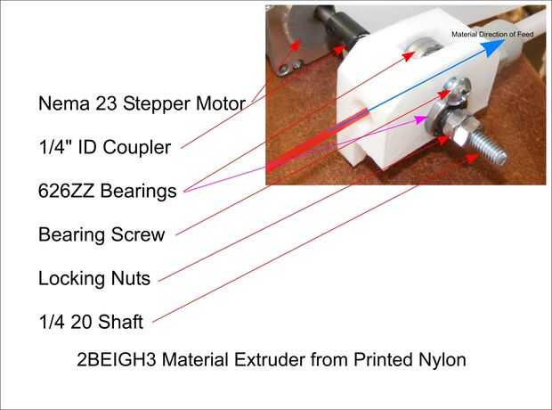 Se trata de una extrusora de simple accionamiento directo. Los beneficios de la flexibilidad del Nylon son aquí.