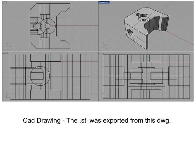 La próxima, un desglose de las partes.  Y la 3ª, como el dibujo de CAD que muestra las cuatro vistas estándar del diseño.