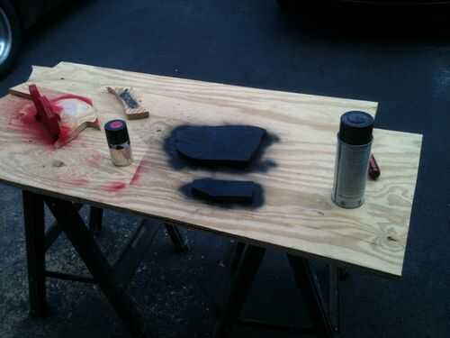Atento a las marcas de lápiz, mi pintura de aerosol roja no estaba lo suficientemente oscura y tuve que arena apagado y lo vuelva a pintar.  Madera contrachapada muestra fácilmente cuando necesita una pintura de capa adicional, especialmente blanco.  Usé pintura en aerosol roja y negra para las piezas allí respectivamente. Que cubrieron bastante bien y no presentaba marcas de lápiz.