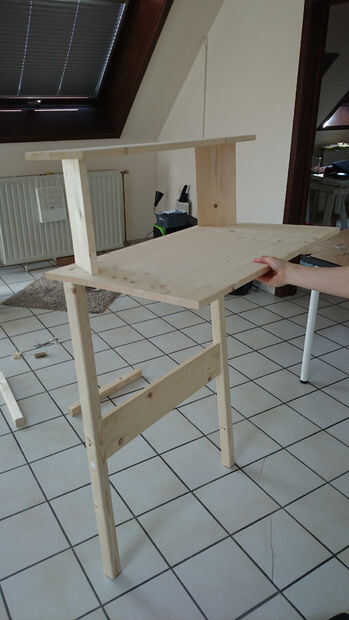 una manera fácil para convertir cualquier mesa de despacho ajustable en un escritorio de pie!La base de esta conversión es hacer dos cuadros de la caja de madera del perno prisionero, destornille la parte superior del escritorio de la estructura y lu