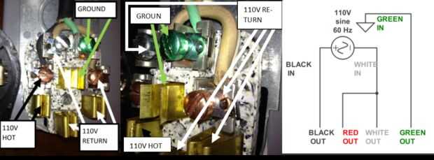 ADVERTENCIA: este adaptador es solo para esta unidad y no debe utilizarse para nada más. La NEMA 14-50 receptáculo está conectado para que lo que la NEMA 14-50 enchufe está conectado en el negro va a negro, blanco va al rojo y blanco, y verde va a verde. El enchufe de 110v es un enchufe de 110V estándar con retorno caliente, blanco negro y verde de tierra.