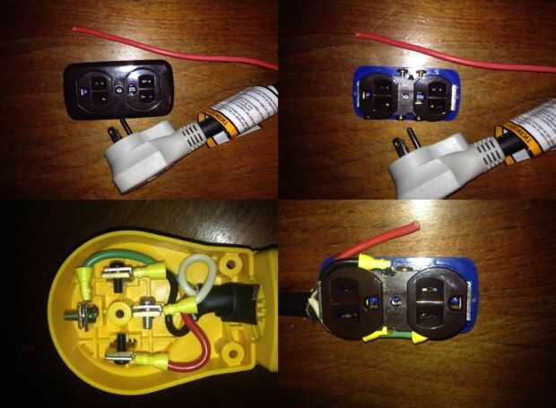 Tenga en cuenta, luego envuelve todo en una envoltura de cable y envuelto con una cinta de auto sellado. Esto no es tan estético como quisiera. El hecho de que el dispositivo de protección de red en el enchufe realmente me obligó a mantener intacta la enchufe.