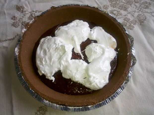 Para hacer la masa de Brownie, derretir la mantequilla y el chocolate en el microondas. Enfríen un poco. En un tazón mediano, batir los huevos, azúcar, vainilla y sal hasta que ligera y con burbujas. Batir el chocolate derretido. Doble de harina. Verter en la costra de galleta.