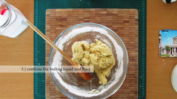Sucede algo mágico. La mezcla hirvienda causar todos los almidones maravillosos en la harina para abrir ad combina la mezcla en una masa semi firme.