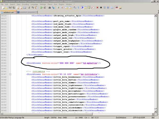Abrir Bloc de notas ++ y carga ardublock.xml