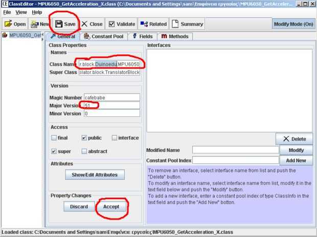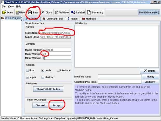 Abierto editor ce la clase y carga MPU6050_GetAcceleration_X.class