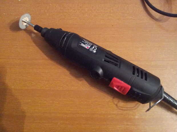 1. Dremel herramienta, sierra para metales o vaivén para cortar la placa.