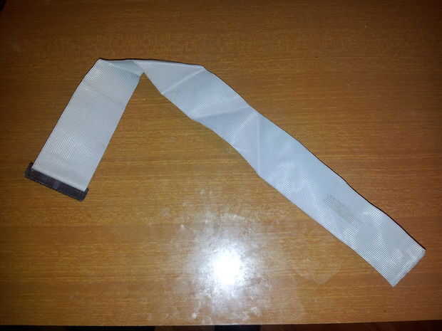 Yo uso un viejo cable de disquete para la correa. Basta con echar un cable desde el cable, ir a través del agujero que usted perfore y haga un nudo.