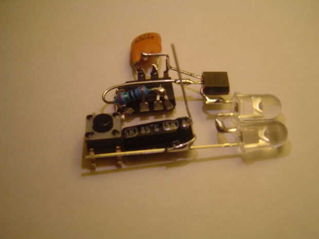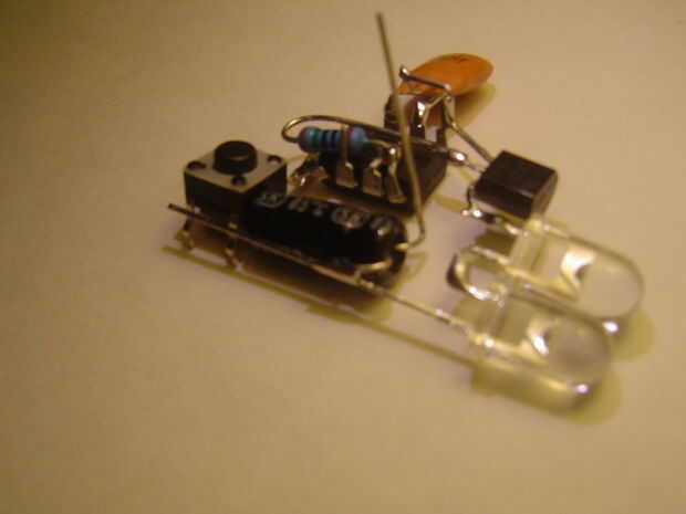 El condensador filtra la energía de la batería para proporcionar una tensión suave para el microcontrolador con el LED parpadea muy rápido.