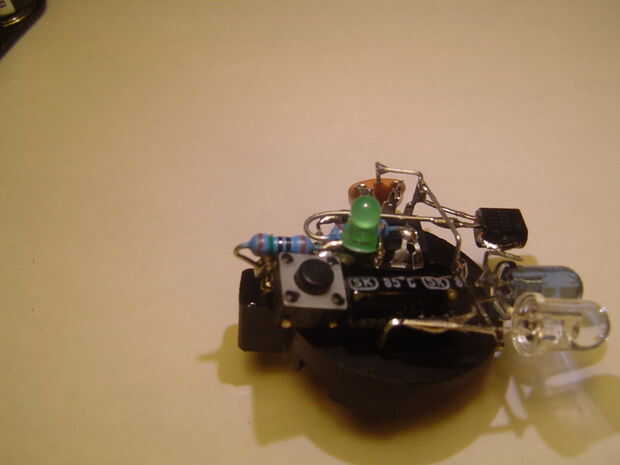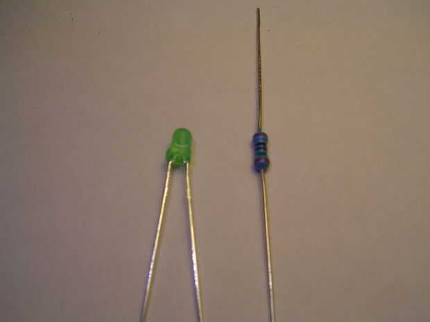 A continuación, cortar el cable positivo muy corto. Corte uno de los cables de la resistencia de muy corto también y soldar los dos juntos. Doblar el otro cable de la resistencia en el positivo de la batería, cortarlo y soldar en su lugar.